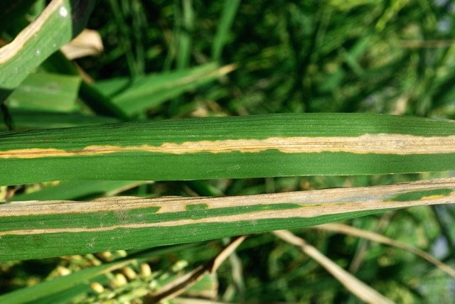 Bacterial blight of rice is a severe disease that affects rice production worldwide. It is caused by a bacterium called Xanthomonas oryzae pv. oryzae infects the rice plant’s vascular system and causes wilting, yellowing, and drying of the leaves.