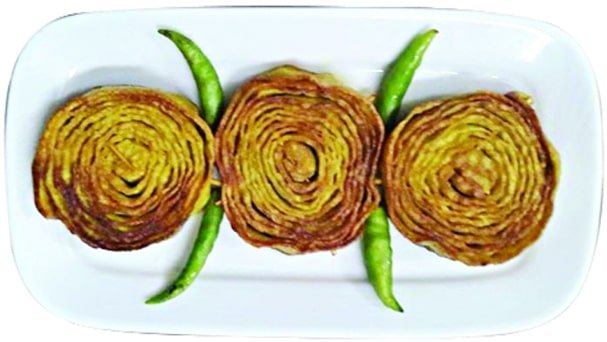 - Heat oil in a frypan and fry the slices on low heat. When both sides of the slices turn brown, remove them and serve for eating hot with rice or bread.