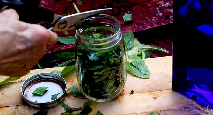 - Cut the leaves or flower buds from the stem and let the sap drip into the container. You can also rub the leaves or flower buds between your fingers to release more sap.
