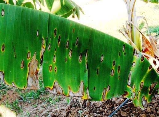 - Cause: Mycosphaerella musicola (Pseudocercospora musae)