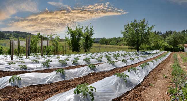 If you have clay soil that holds water and nutrients, use a mulch that improves drainage and aeration, such as plastic or gravel.