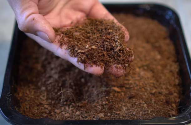 Fill the growing tray with the chosen growing medium, ensuring it’s evenly moist but not soggy. You can use a watering can or spray bottle to wet the medium. The medium should be about 1 inch thick in the tray.