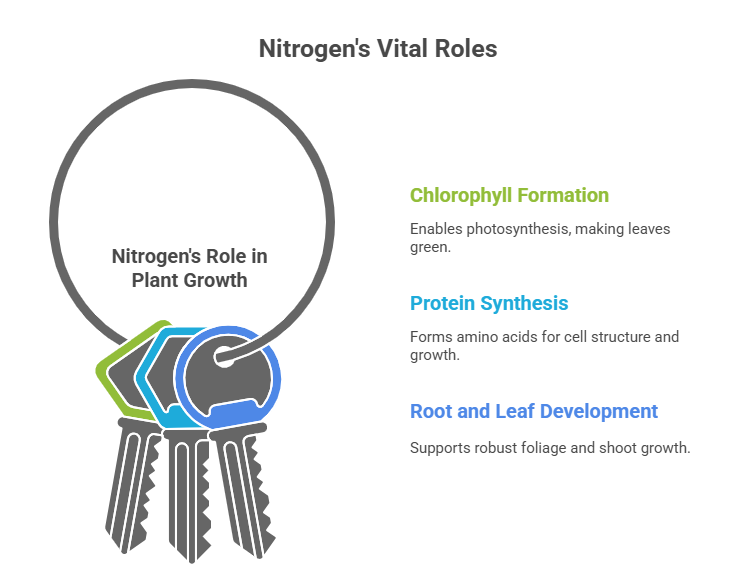 - Root and leaf development: Especially in early stages, nitrogen supports robust foliage and shoot growth.